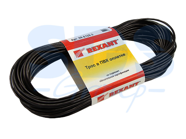 Трос стальной в ПВХ оплетке d=2,5 мм, черный ( моток 20 м) REXANT