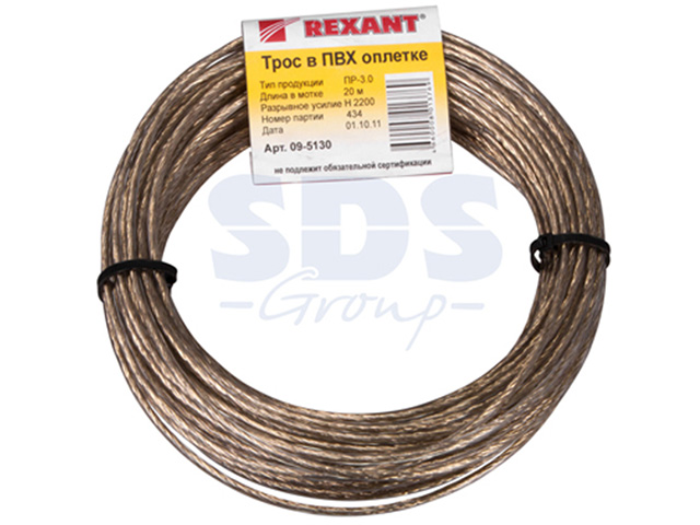 Трос стальной в ПВХ оплетке d=3,0 мм, прозрачный ( моток 20 м) REXANT