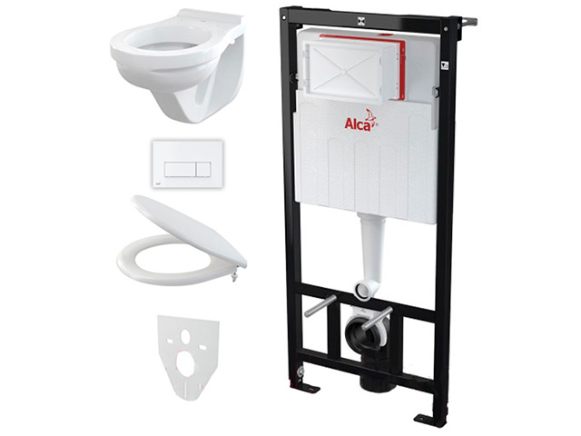 Инсталляционный сет 5 в 1 THIN с кнопкой M570 белая + консольный унитаз Alca, Alcaplast (Комплект инсталляции с унитазом и кнопкой) купить в Минске: