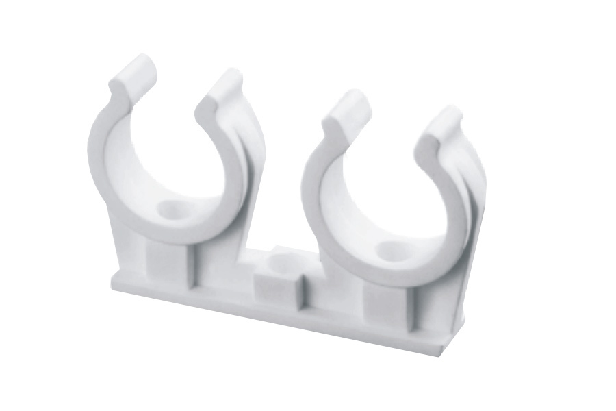 Клипса (опора) для труб ПП двойная d 32, белый РосТурПласт