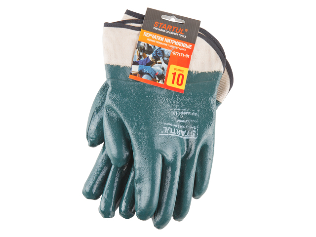 Перчатки нитриловые полн. покрытие (манжет крага) размер №10 STARTUL (ST7171-01)