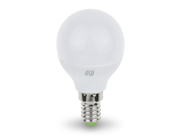 Лампа светодиодная G45 ШАР 5 Вт 160-260В E14 4000К ASD (40 Вт аналог лампы накал., 450Лм, нейтральный белый свет)