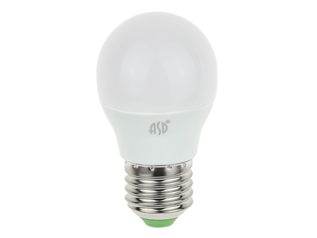 Лампа светодиодная G45 ШАР 5 Вт 160-260В E27 4000К ASD (40 Вт аналог лампы накал., 450Лм, нейтральный белый свет)