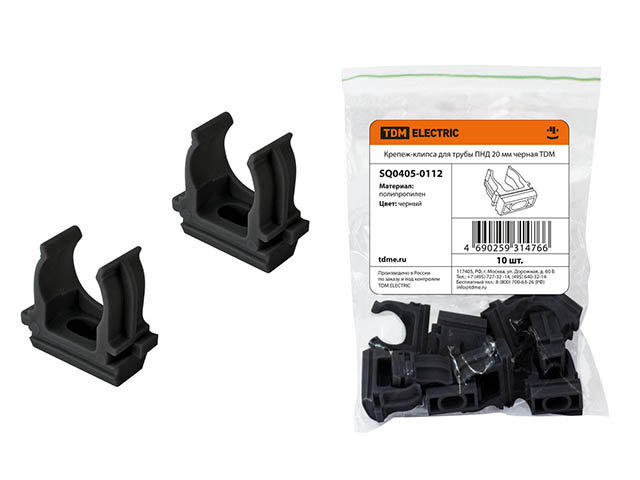 Крепеж-клипса для трубы ПНД 20 мм черная TDM (уп 10шт) (Кратно упак =10шт) купить в Минске: