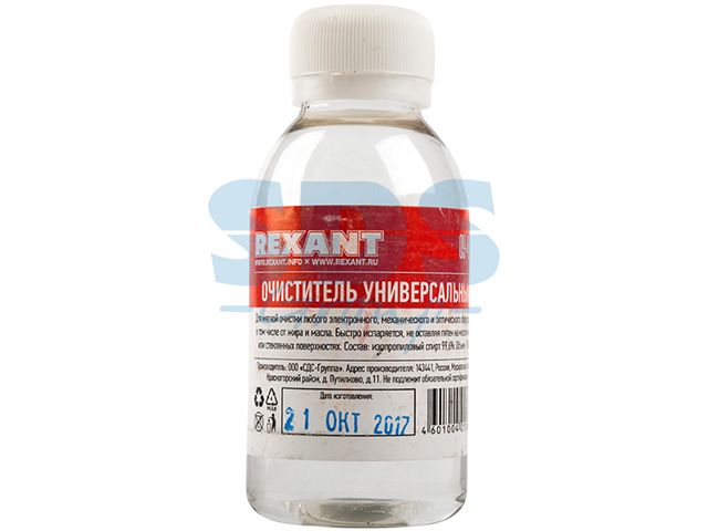 Очиститель универсальный 100 мл REXANT предназначен для <мягкой> очистки или обезжиривания различных предметов. Применяется для очистки радиоэлектронных элементов (печатные платы, контакты реле и прочие), очистки оптического оборудования (линзы стекла, объективы), бытовых нужд (чистка зеркал, оконных стекол, хрусталя; как жидкое топливо в спиртовках и зажигалках; растопка древесного угля), в автомобильном деле (очистка и удаление влаги из бензобака автомобиля, антизамораживатель стеклоомывающей жидкости при минусовых температурах), при монтаже и обслуживании волоконно-оптических кабелей (ВОЛС), обслуживания аудио- и видеооборудования и других целей. Представляет собой бесцветную прозрачную жидкость без механических примесей с характерным запахом. Очиститель является хорошим растворителем для различных эфирных масел, при промывке высокотехнологичных узлов и агрегатов, как обезжиривающее средство. Он быстро испаряется, не оставляя пятен на металлических или стеклянных поверхностях.Основные характеристики:Состав: абсолютированный изопропиловый спирт 99,6 %Запах: спиртовойОбъем: 100 мл