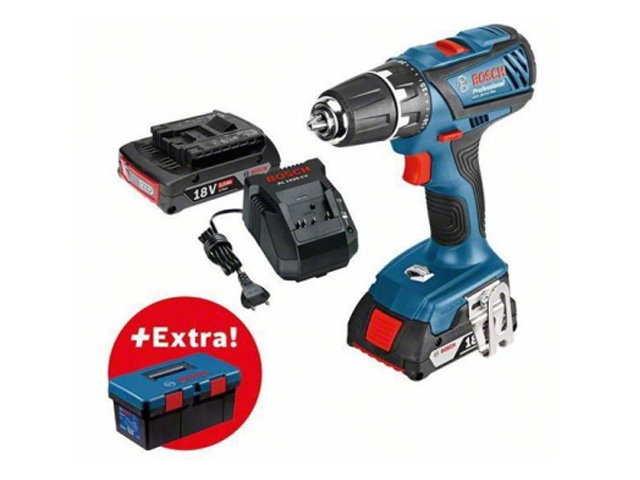 Аккум. дрель-шуруповерт BOSCH GSR 18-2-LI PLUS в чем. + ящик для инструментов PRO (18.0 В, 2 акк., 2.0 А/ч Li-Ion, 2 скор., 63 Нм, шурупы до 8 мм)