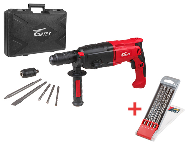 Перфоратор WORTEX RH 2829 X в чем. + (2 зубила, 3 сверла)+АКЦИЯ! (набор буров в подарок!) (В подарок набор буров (WHDS5010C10414))