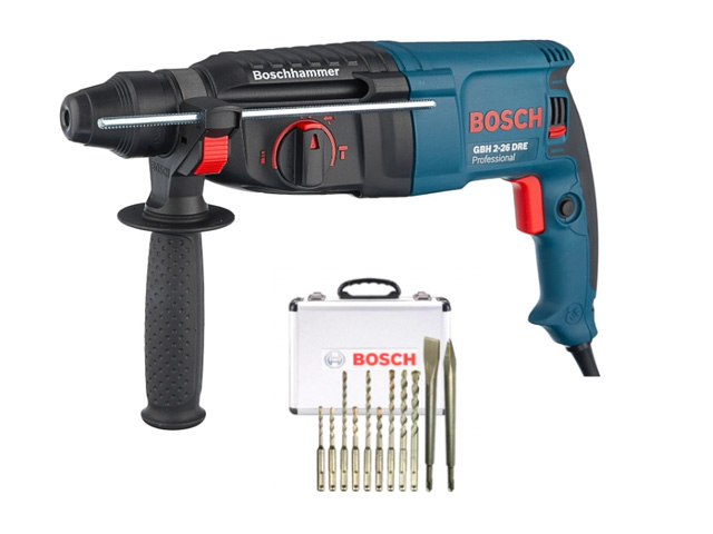 Перфоратор BOSCH GBH 2-26 DRE в чем. + набор сверл (800 Вт, 2.7 Дж, 3 реж., патрон SDS-plus, вес 2.7 кг)