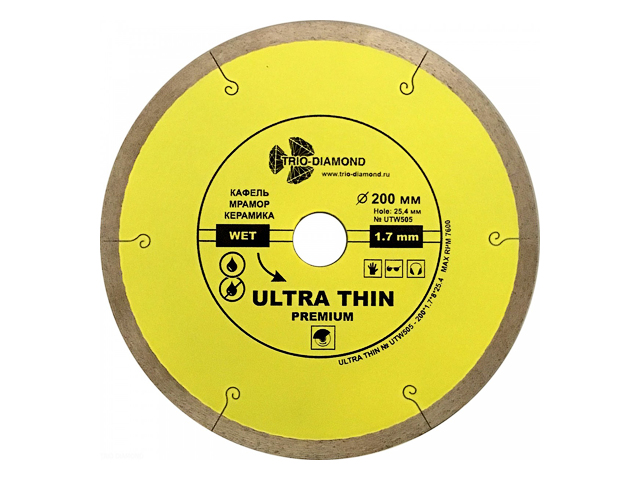 Алмазный круг 200х25,4мм по керамике сплошн.ультратонкий Hot Press (1.7мм) (Trio-Diamond)