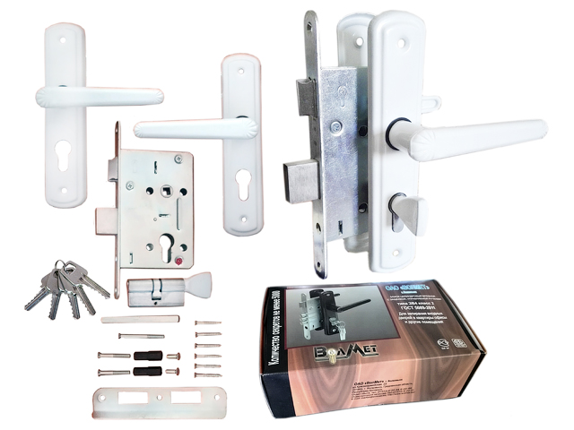 Замок врезной цилиндровый БЕЛЫЙ ЗВ4-Б-5-29 ("ключ-вертушка", прямоугльный засов) (ВОЛМЕТ)