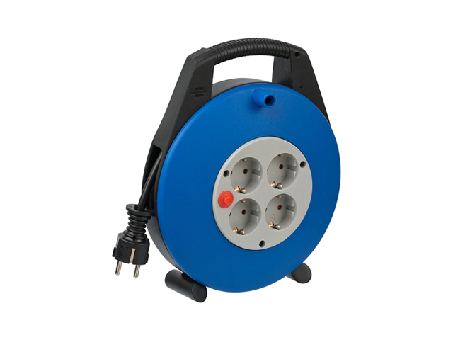 Удлинитель на катушке 10м бытовой (4 роз., 3.3кВт, с/з, ПВС) Brennenstuhl (провод 3х1,5мм2; сила тока 16А; с/з - с заземляющим контактом)