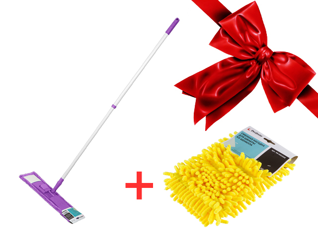 Швабра для пола с насадкой из микрофибры, фиолетовая + Сменная нас. из шенилла, желтая, PERFECTO LIN (ПРОМО ЭКОНОМИЯ 17%) (PERFECTO LINEA) купить в Минске:
