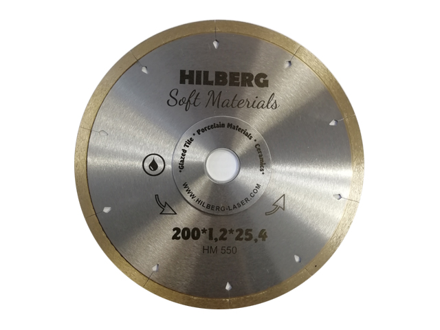 Hilberg сплошной Hyper Thin 200*8*25,4 Толщина реж. кромки 1.2 mm Назначение: керамическая, форфоровая и глазурованная плитка. Особенности: высококачественный алмазный диск. Сверхтонкая режущая кромка толщиной 1,2 мм обеспечивает чистый рез без сколов.
