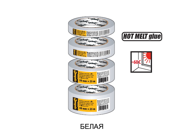 Лента малярная 25ммх45м CYCLONE, белая