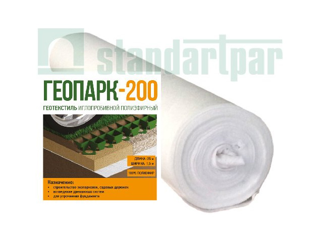 Полотно полиэфирное иглопробивное Геопарк 200 (Геотекстиль, рулон Ш 1,5 м. Д 25 м.) (Стандартпарк)