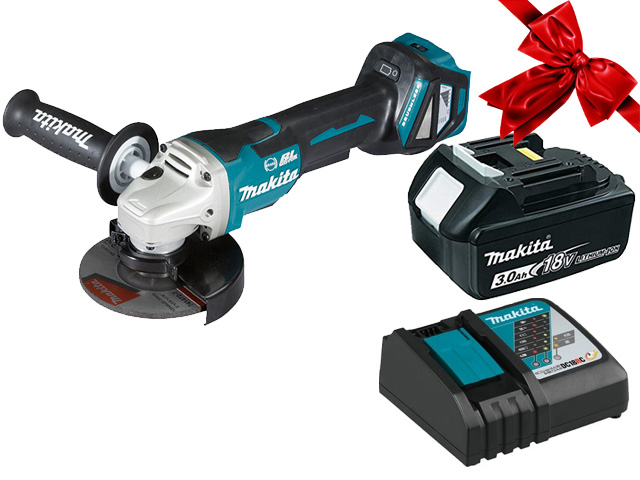 Аккум. углошлифмашина MAKITA DGA 518 ZU в кор. + АКЦИЯ (BL1830B + DC18RC) (18.0 В, 1 акк. 3.0 А/ч, Li-Ion, диск 125х22.0 мм, вибро)