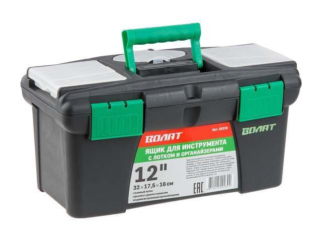 Ящик для инструмента пластмасс. 32х17,5х16 см (12") с лотком и органайз.20235 ВОЛАТ