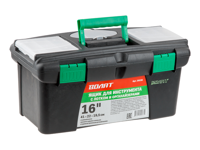 Ящик для инструмента пластмасс. 41х22х19,5 см (16") с лотком и органайз. 20236 ВОЛАТ