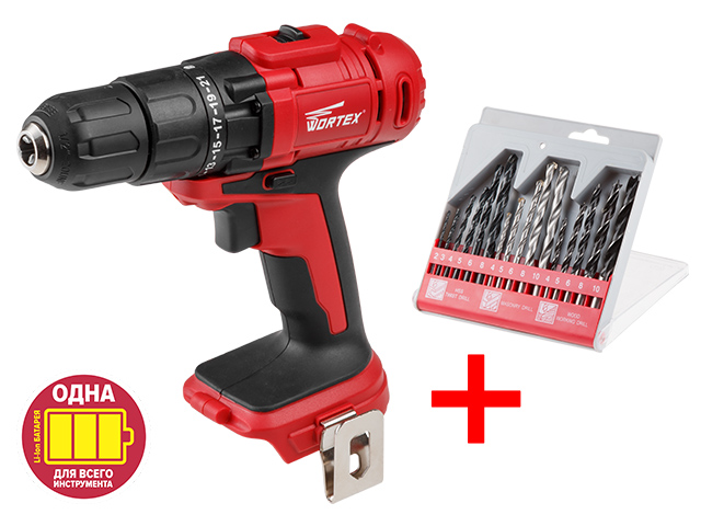 Аккум. дрель-шуруповерт WORTEX BD 1830 Li в кор.+ АКЦИЯ ( Набор сверл универсальный 16 шт.) (18.0 В, БЕЗ АККУМУЛЯТОРА И ЗУ, 2 скор., 40 Нм, шурупы до