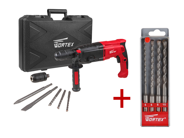 Перфоратор WORTEX RH 2829 X в чем. + (2 зубила, 3 сверла) + АКЦИЯ (набор буров в подарок) (В подарок набор буров 4 шт.!)