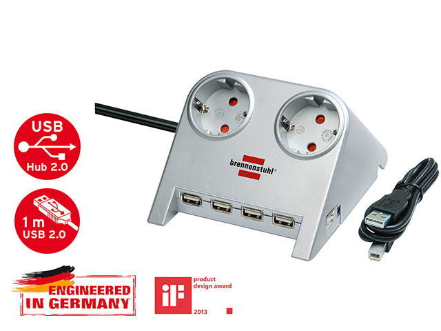 Удлинитель настол. 1.8м (2 роз., 4 USB порта, 3.3кВт, с/з, ПВС) сер. Brennenstuhl Desktop-Power-Plus (серебристый, провод 3х1,5мм2, сила тока 16А, с/з