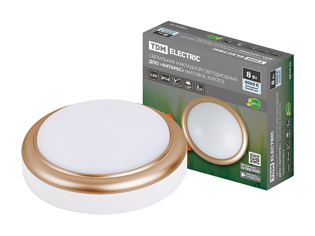 Светильник накладной LED ДПО "Антарес" 8Вт 4000К круг 140*58 мм мат.золото IP54 TDM (пылебрызгозащищенный)