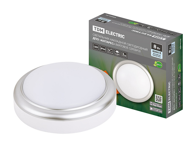 Светильник накладной LED ДПО "Антарес" 8Вт 4000К круг 140*58 мм мат.серебро IP54 TDM (пылебрызгозащищенный)