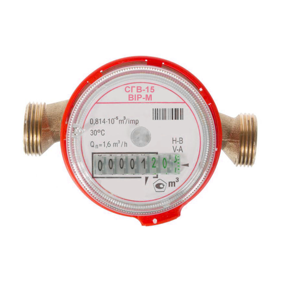 Счетчик для горячей воды СГВ-15 РФ "ВIР-М" (Дополнительно приобретается: Фильтр косой, Комплект монтажный или Узел присоединительный) (Бетар)