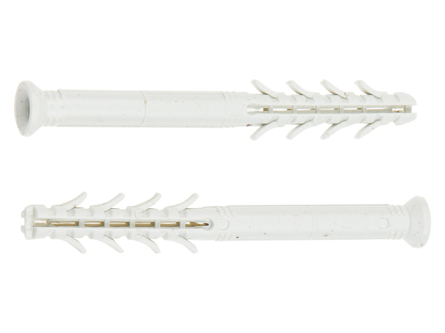 Дюбель быстрого монтажа очень эластичный. И за счёт увеличиной распорной части лучше распирается в отверстии. Дюбель имеет усики в, которые позволяют прочно держаться ему в основании.