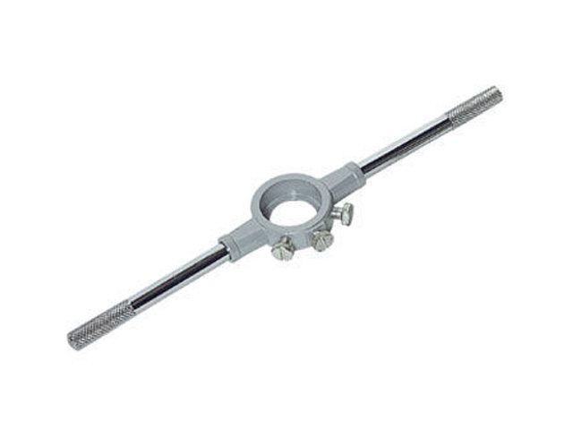 Плашкодержатель или вороток для плашек - это специальный инструмент, который используется при нарезании резьбы плашкой вручную. Вороток для плашек состоит из корпуса, съемных ручек и винтов крепления. Корпус плашкодержателя имеет вид кольца, внутренняя поверхность которого представляет собой двухступенчатую цилиндрическую втулку для расположения и упора плашки. Специальные ручки воротка увеличивают длину рычага, что облегчает работу при нарезании резьбы, а возможность их снять существенно экономит место при хранении.