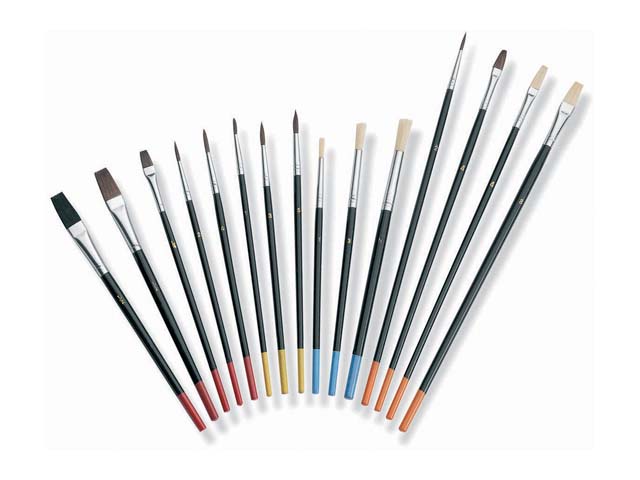 Комплект: 5 кистей из свиной щетины, 10 из щетины пони;