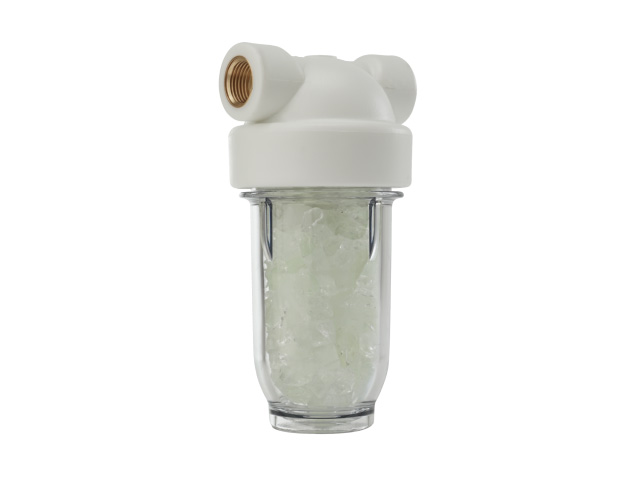 Стандартный 5" фильтр предотвращающий образования накипи в водонагревательных приборах. Состоит из крышки фильтра, которая имеет два варианта подключения к водопроводу (прямое и угловое), и колбы, наполненной кристаллами полифосфатной соли. Молекулы полифосфатной соли покрывают защитной плёнкой соли магния и кальция, тем самым предотвращая не только образование накипи, но и удаляет уже образовавшийся старый налёта. Таким образом дорогостоящая техника, их приборы и отдельные комплектующие прослужат Вам гораздо дольше, при этом кристаллы позволят сэкономить расход воды, электроэнергии, моющих средств.