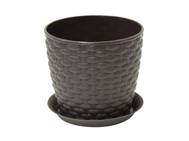 Кашпо РОТАНГ 1л с поддоном (коричневый) (IDEA)