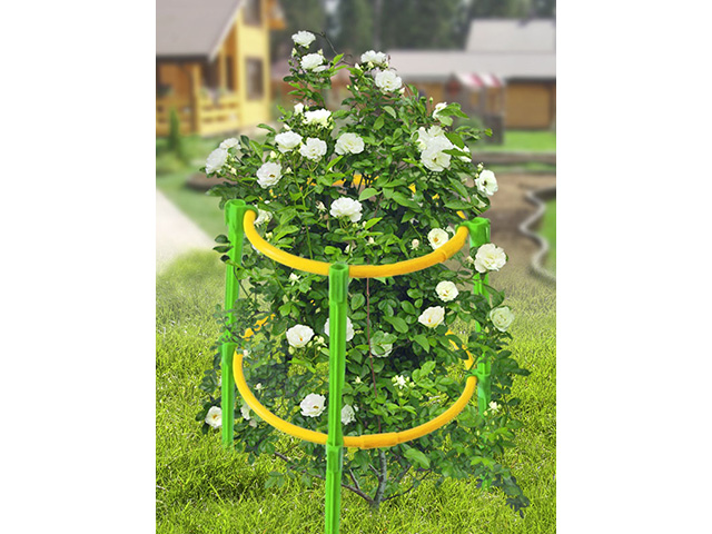 Кустодержатель пластмассовый на четырёх ножках предназначен для поддержки высоких, объёмных цветов и кустарников. Имеет 2 кольца диаметрами 30 и 50см. Поставляется в разобранном состоянии, в индивидуальном п/эт пакете, что позволяет продавать его в магазинах с небольшой площадью. Высота - 80см.