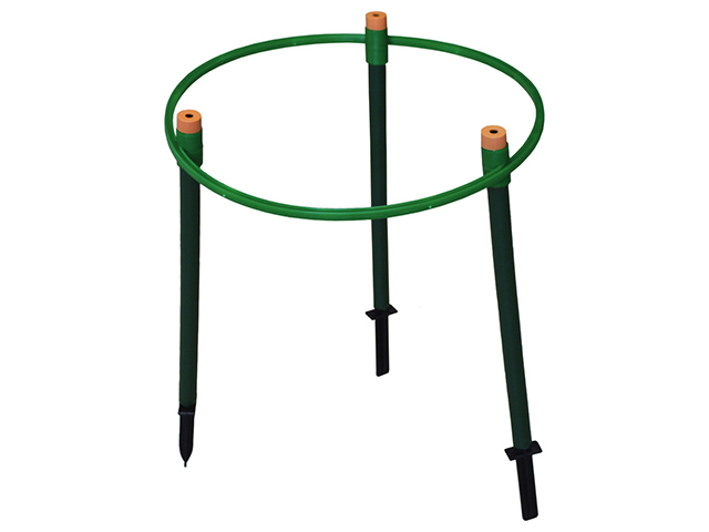 Кустодержатель пластмассовый на трёх ножках предназначен для поддержки невысоких цветов. Поставляется в разобранном состоянии, в индивидуальном п/эт пакете, что позволяет продавать его в магазинах с небольшой площадью. Высота - 40см, диаметр - 38см.