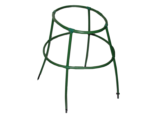 Кустодержатель пластмассовый на четырёх ножках предназначен для поддержки высоких, объёмных цветов. Имеет 2 кольца с разными диаметрами - 48 и 64см. Поставляется в разобранном состоянии, в индивидуальном п/эт пакете, что позволяет продавать его в магазинах с небольшой площадью. Высота - 90см.