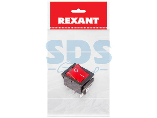 Выключатель клавишный 250V 15А (6с) ON-ON (RWB-506, SC-767) красный с подсветкой (инд.уп.) REXANT