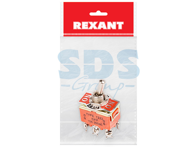 Тумблер 250V 15А (6c) ON-OFF-ON двухполюсный (KN-203) (инд.уп.) REXANT