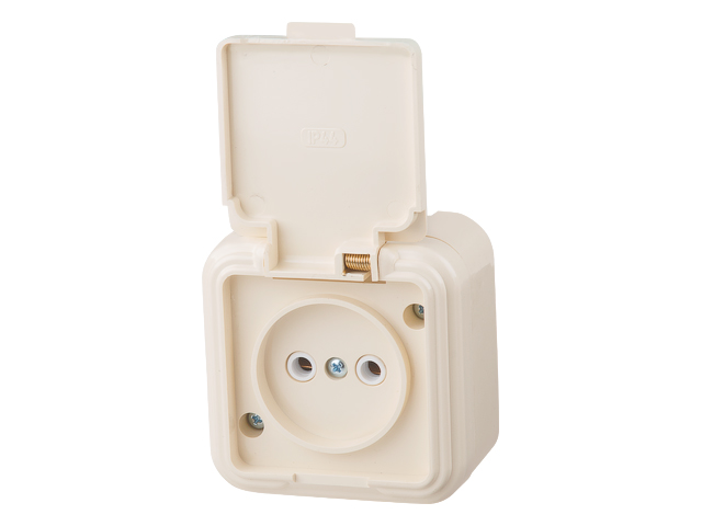 Розетка 1-ая (открытая, б/з, брызг. защ.) бежевая, Стандарт, Юпитер (RA 16-201 БЖ) (ЮПИТЕР)
