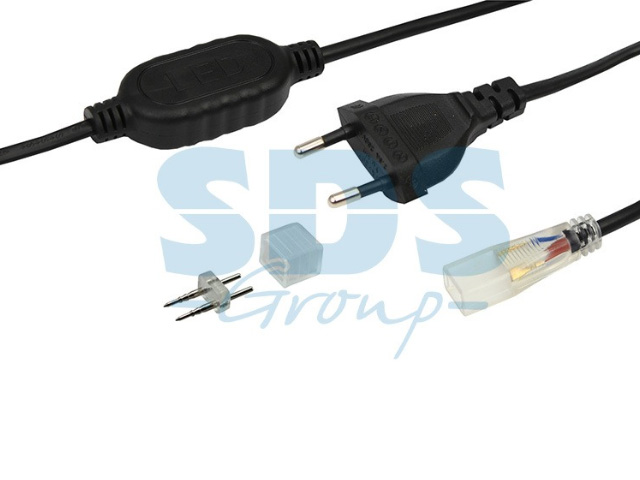 Установочный комплект для LED ленты 220В, 6.5x17мм, до 50м (шнур питания 4А, заглушка, коннектор) (NEON-NIGHT)