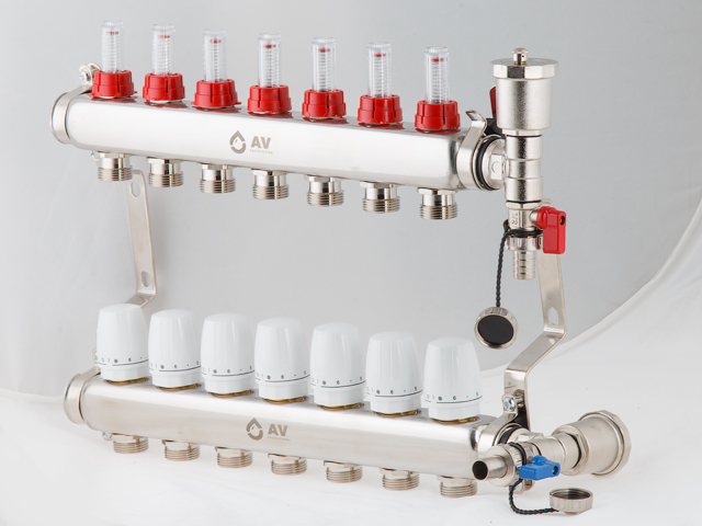 AVE155022 Коллектор 1/2"х7 вых. двухсторонний AV Engineering - 2 шт