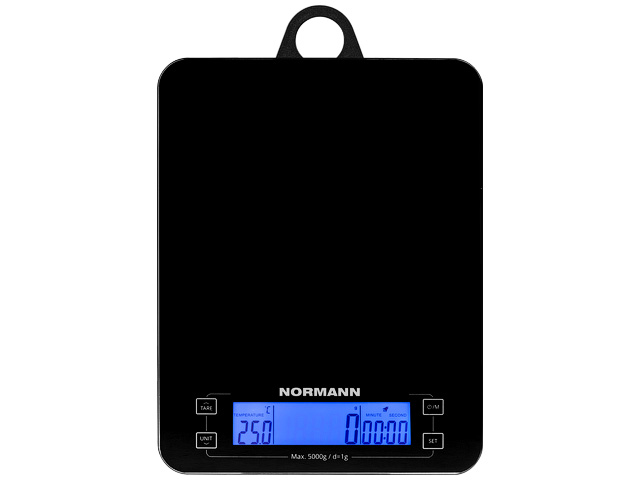 Весы кухонные ASK-267 NORMANN (5 кг; стекло 3 мм; термометр; часы; таймер; дисплей 95х25 мм с подсветкой; подвес)