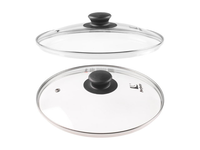 Крышка стеклянная, 240 мм, с металлическим ободом, круглая, PERFECTO LINEA (Стеклянная крышка на сковороду диаметром 24 см с паровыпуском изготовлена