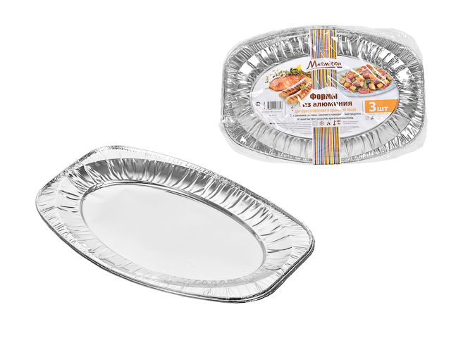 Форма для выпечки алюминиевая, овальная, 3 шт., 42,5х28,5х2,9 см, MARMITON (для запекания, обжарки, хранения и замораживания продуктов)