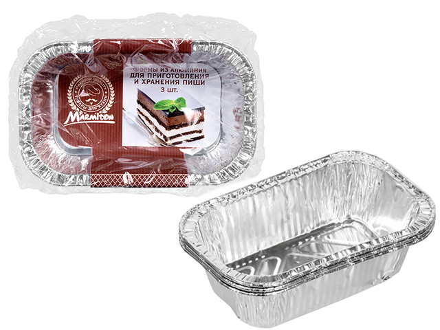 Форма для выпечки алюминиевая, прямоугольная, 3 шт., 13,5х8,5х4 см, MARMITON (для запекания, обжарки, хранения и замораживания продуктов)