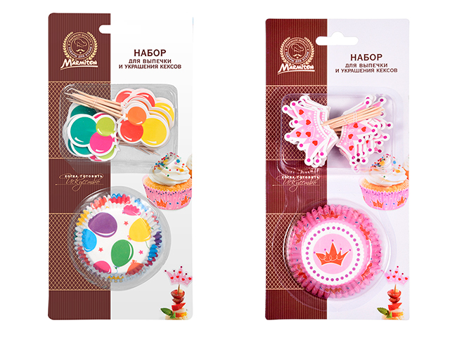 Формочки не требуют предварительной смазки маслом, жиром. Пригодны для использования в микроволновых, газовых и электрических печах. Для одноразового применения. Шпажками можно украсить кексы или канапе. Цвет: два дизайна в ассортименте.