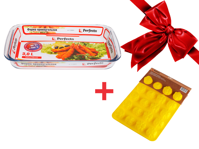 Форма из жаропрочного стекла, 3.0 л, прямоугольная + Форма для выпечки, силиконовая, PERFECTO LINEA (ПРОМО ПОДАРОК форма силиконовая для выпечки)
