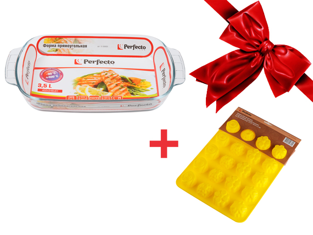 Форма из жаропрочного стекла, 3.5 л, прямоугольная + Форма для выпечки, силиконовая, PERFECTO LINEA (ПРОМО ПОДАРОК форма силиконовая для выпечки)