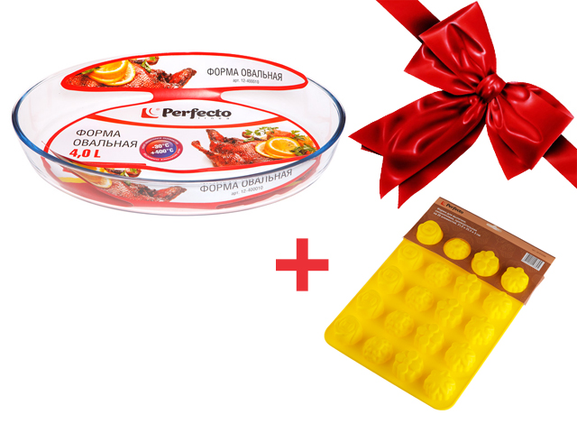 Форма из жаропрочного стекла, 4.0 л, овальная + Форма для выпечки, силиконовая, PERFECTO LINEA (ПРОМО ПОДАРОК форма силиконовая для выпечки)