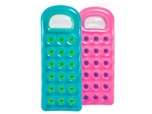 Надувной мартас для плавания Intex с подстаканниками 59895NP - на таком матрасе вы сможете не только плавать, но и загорать на пляже или во дворе загородного дома. Матрас с рельефной поверхностью снабжен оригинальным подголовником и восемнадцатью разноцветными кармашками в форме стаканов, в которых можно хранить все, что угодно: от мелких предметов до прохладных напитков и стаканов. Изготовлен из высококачественного винила толщиной 0,35 мм, имеет 2 воздушные камеры.